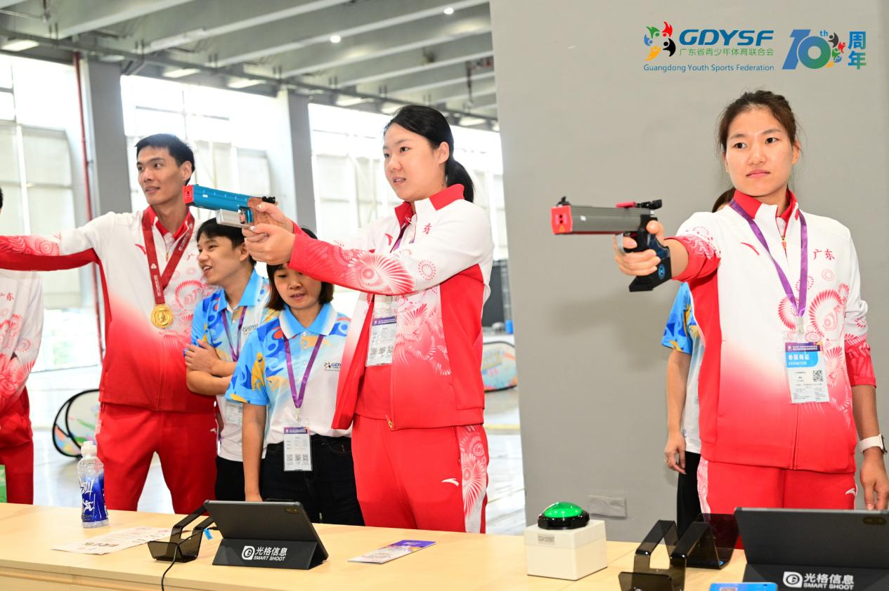 体博会首日,青体联专区即迎来冠军打卡热潮。奥运跳水冠军张雁全、世界跳水冠军余卓成、中国女足“铿锵玫瑰”施桂红,以及全运会广东跆拳道天团郭清、张梦宇、王要锡、黄科奋来到现场,深度体验匹克球、光电射击等项目。冠军们与青少年互动教学,分享运动生涯心得,将现场氛围推向高潮。次日,中国赛艇世界冠军天团空降展会,赛艇项目第一个世界冠军成员林志爱、张华杰、曾美兰,还有名宿刘稀容、王芳、何燕雯等一行出席“青体联十周年发展暨匹克球项目案例宣讲会”。
