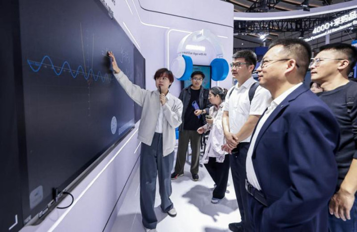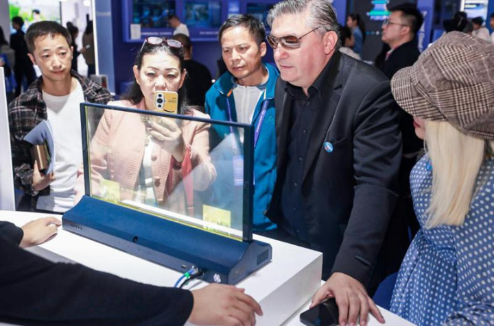 在“古镇旅人”场景中,书生苏墨因方言障碍与记录美景力不从心而懊恼。观众递上“讯飞双屏翻译机2.0”和“讯飞文旅大模型”。翻译机轻松化解语言隔阂,文旅大模型则根据其偏好一键生成个性化行程,并在游览后自动生成精美游记,实现“遍行天下无阻碍”的畅想。展会现场,一款面向公共服务窗口的多语言AI透明屏同样引人注目,它能自动识别38种语言并实现精准互译,即使环境嘈杂,也能通过多模态降噪技术锁定交互人,保障沟通顺畅。作为专业翻译领域的领导者,科大讯飞已构建从翻译机、AI翻译耳机到讯飞听见、讯飞同传的软硬一体全场景解决方案。