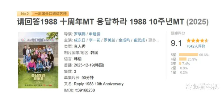 最近冷眼发现了一档豆瓣评分高达9.1分的韩综——罗英锡PD打造,《请回答1988》全员出演的团综《请回答1988十周年MT》。知名PD+原班人马的梦幻组合,让冷眼对这档节目颇为期待,团综这块烫手山芋,难道被韩国人跑通了吗?